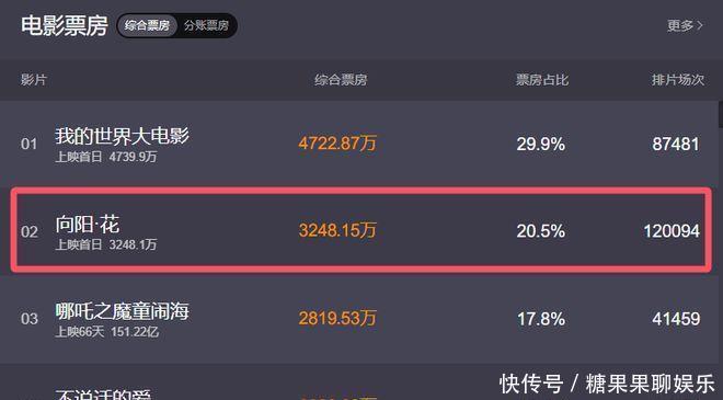 首先是前两天的预售阶段,数据相当能打,卖出了8000多万,吊打历届文艺片,但是4日正式上映后,目前实时票房则是3000万+,被《我的世界大电影》远远甩在后头了,而《向阳花》的排片场次可是要比其他片子占据优势的,尽管片方各种挽尊营销,还是难掩票房遇冷的难堪局面。